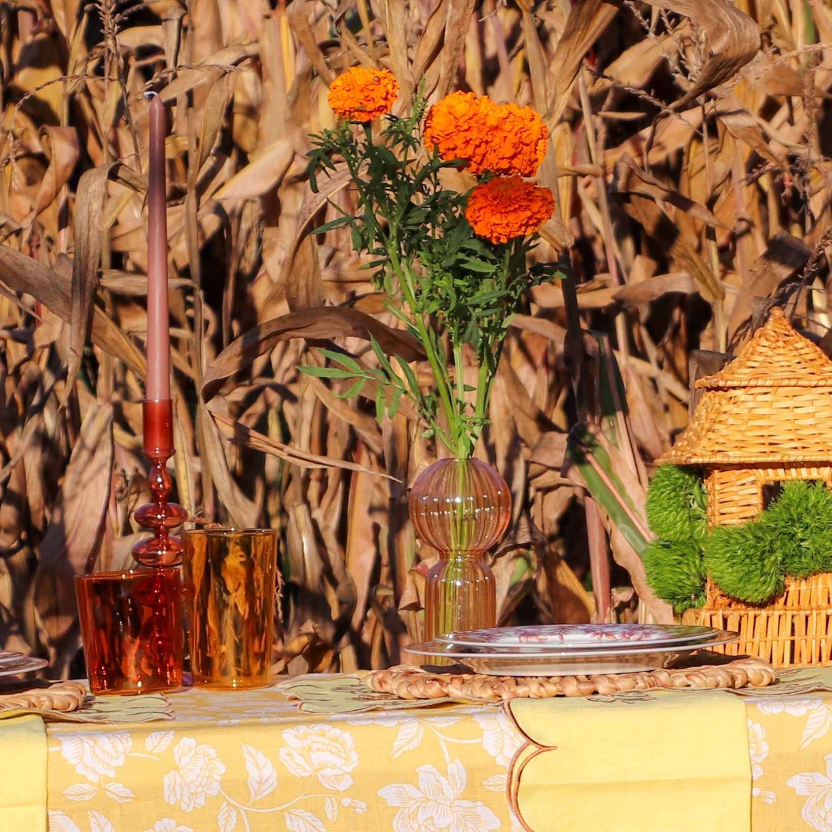 A borosilicate glass candle holder in a warm brown hue with a ribbed base.