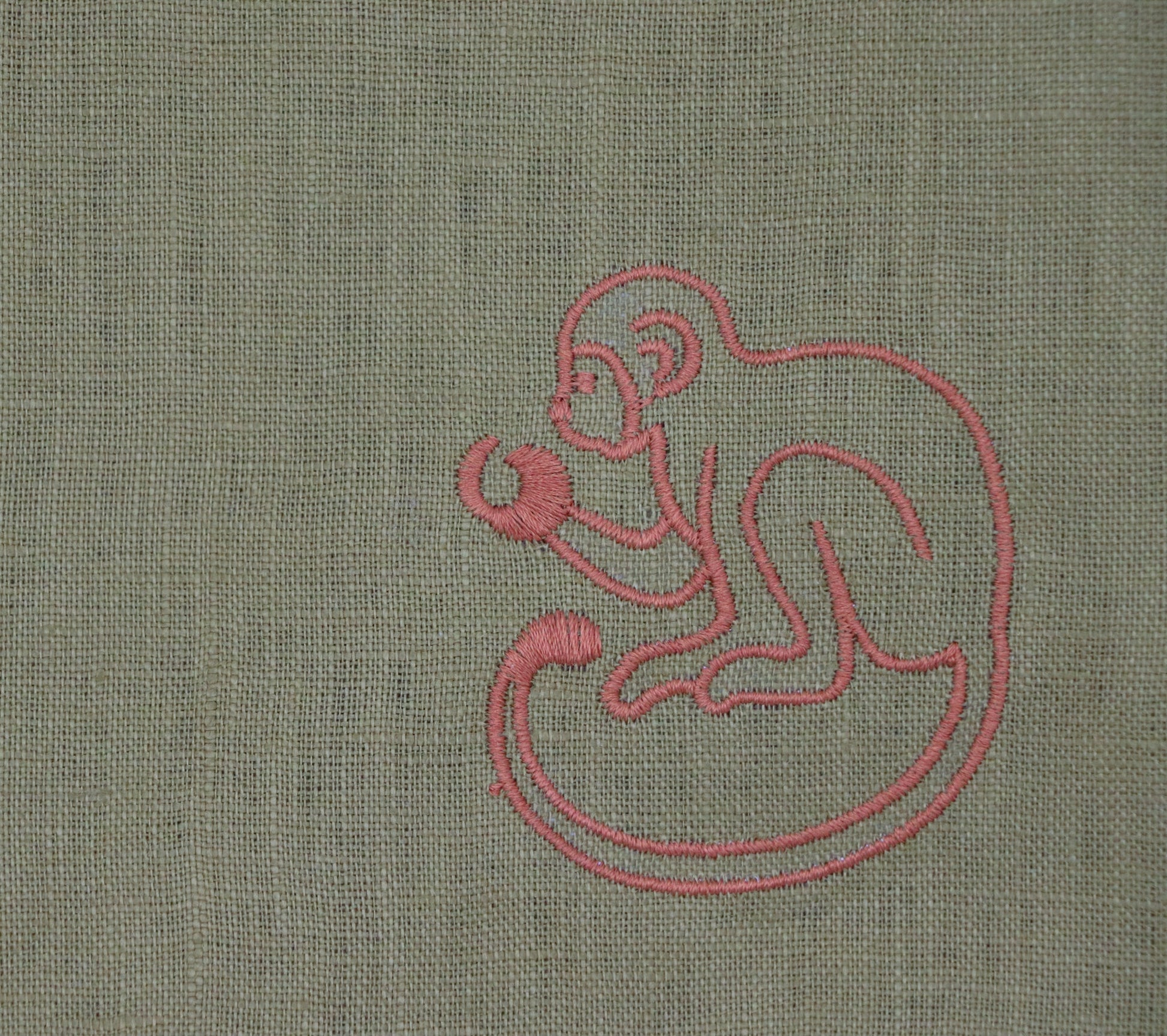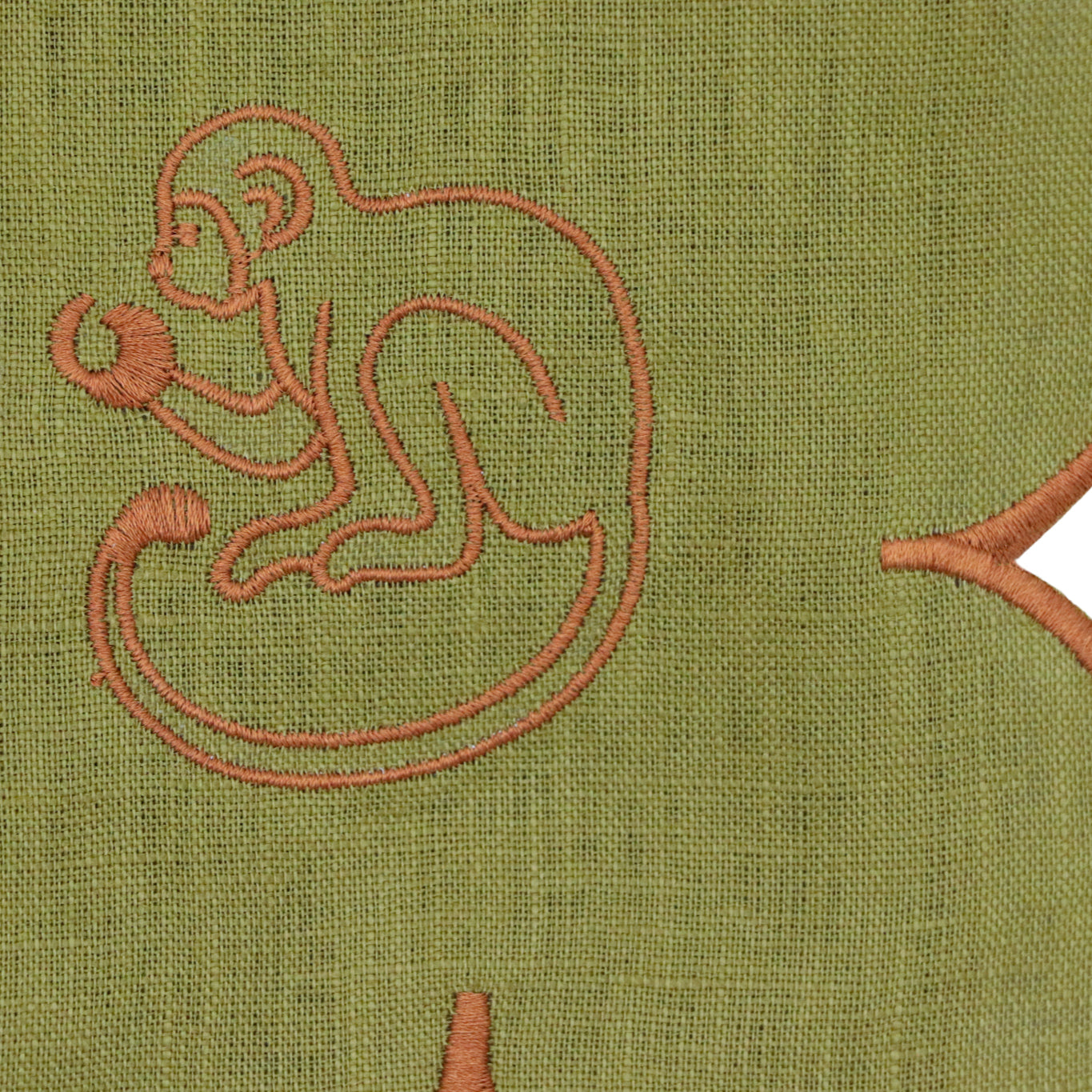 Step into the lush embrace of the Indian tropics with our Earthen Pine Napkin from the Shimla Social Collection. Crafted from 100% khaki green linen, adorned with a brown embroidery of a playful monkey motif, and a scalloped trim. Pair it with our coordinating tableware from the Shimla Social collection