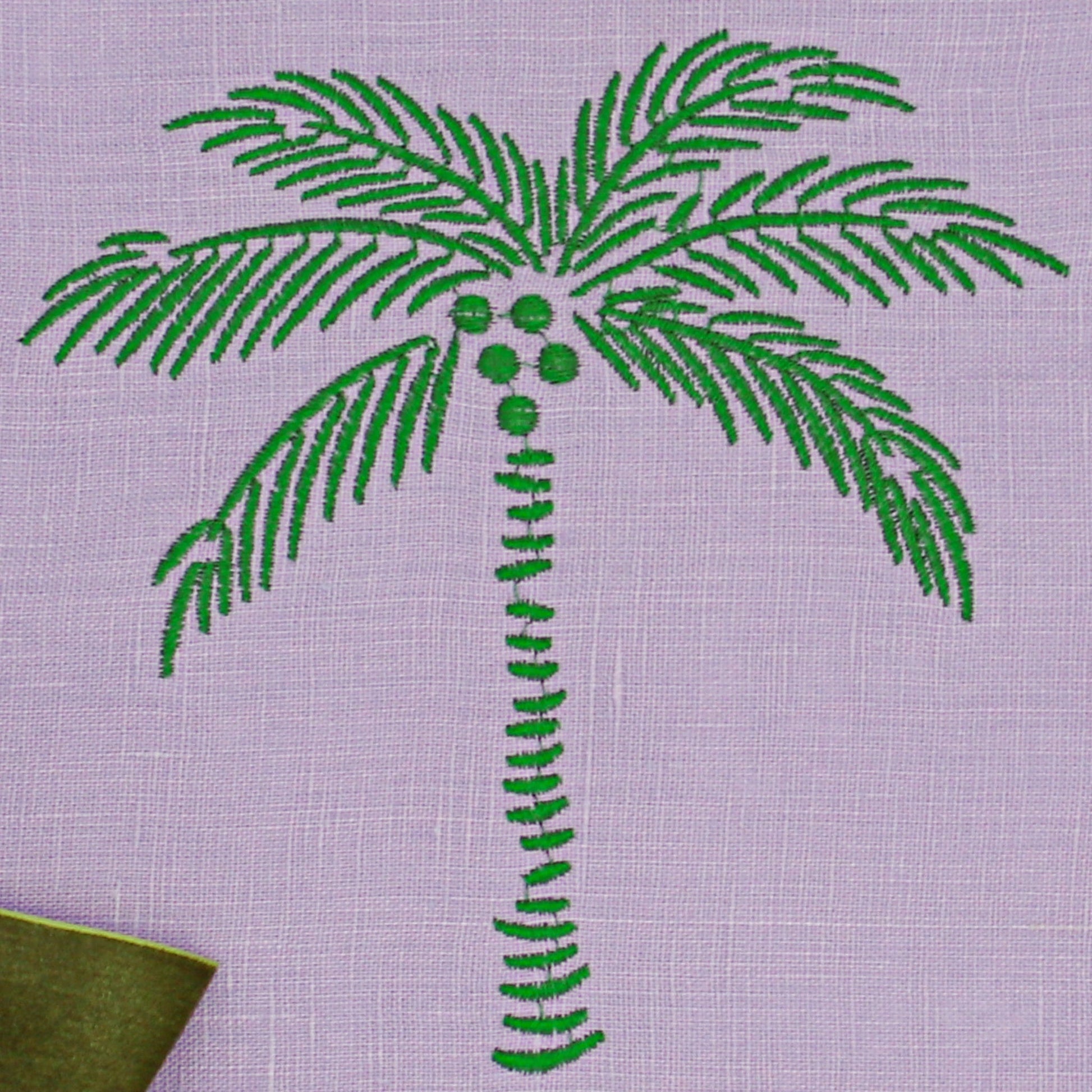 Indulge in the opulence of a bygone era with our Jewelled Mirage Napkin. Exquisitely crafted from lilac linen with emerald green embroidered edging and palm tree motifs on either side. Pair it seamlessly with our coordinating tableware to curate a captivating setting that transports you to a bygone era of timeless charm and the enchanting allure of our Vintage Palm collection