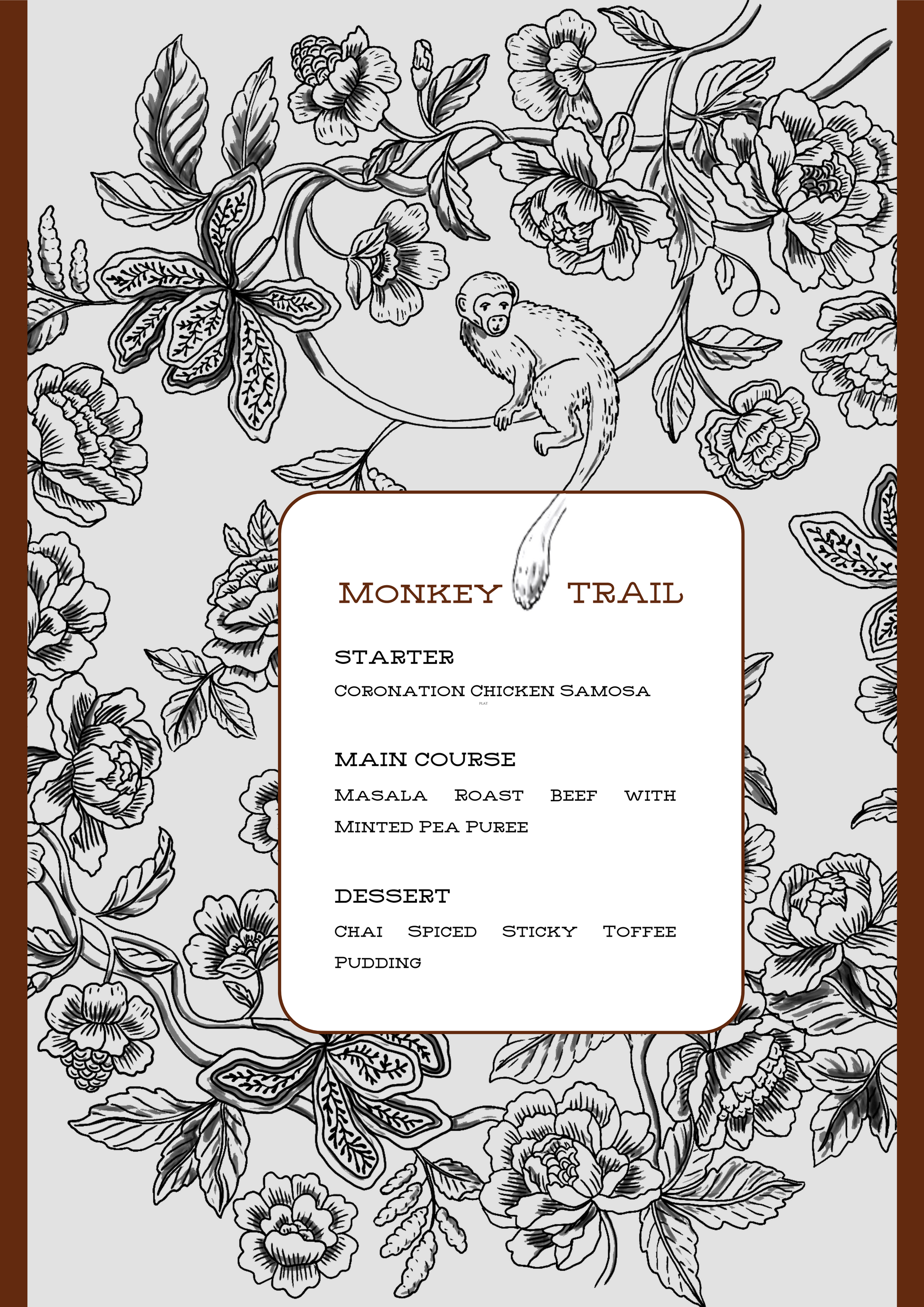 PRINTED MENU: Monkey Trail - Burgundy & Grey - Set of 6
