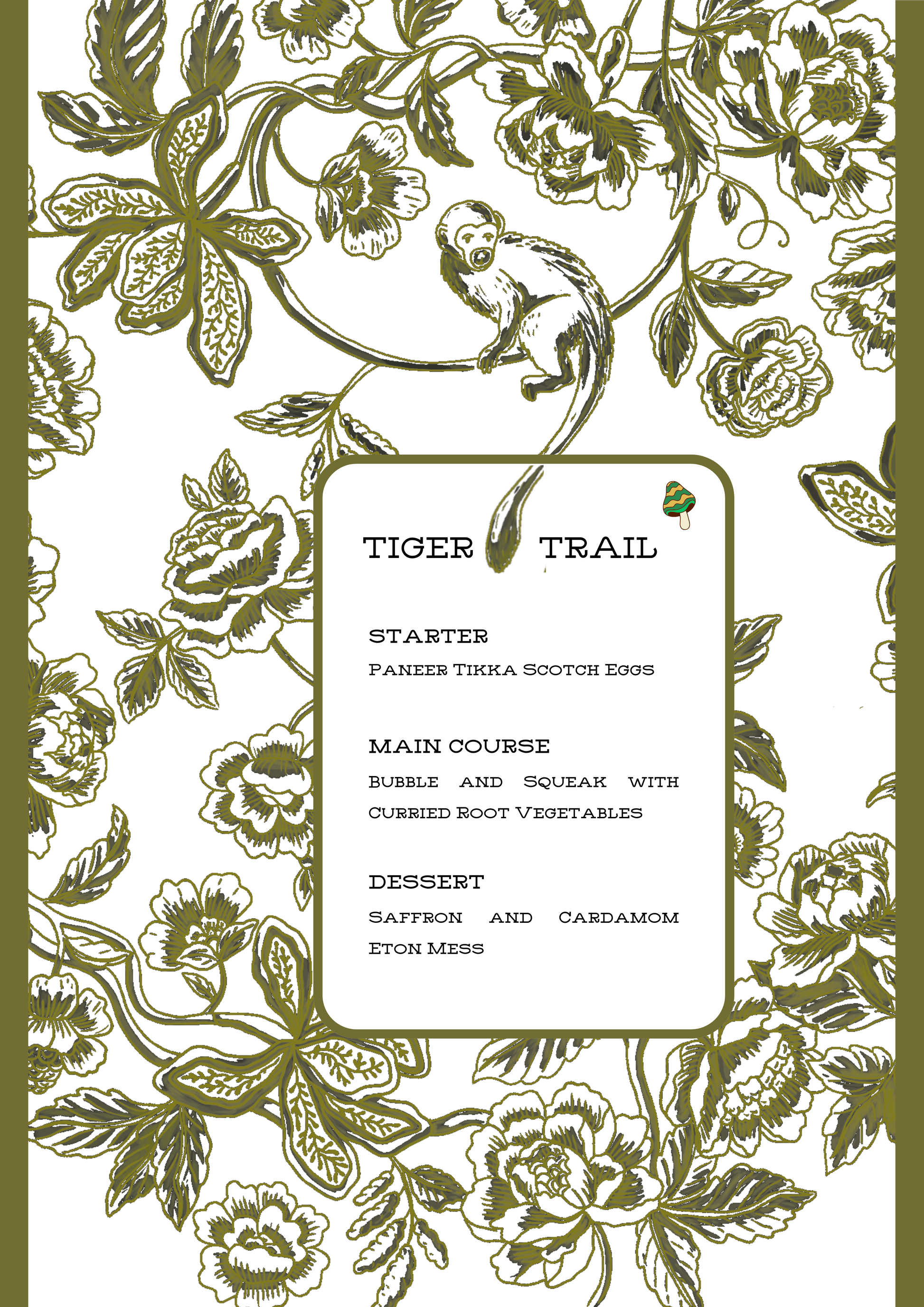 PRINTED MENU: Monkey Trail - Green on Green - Set of 6