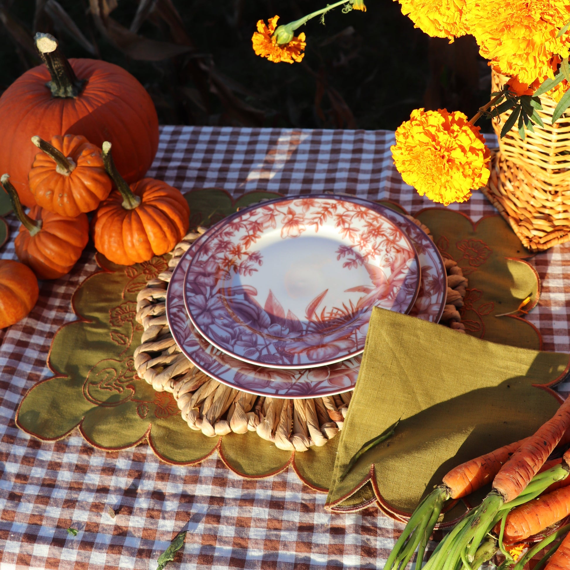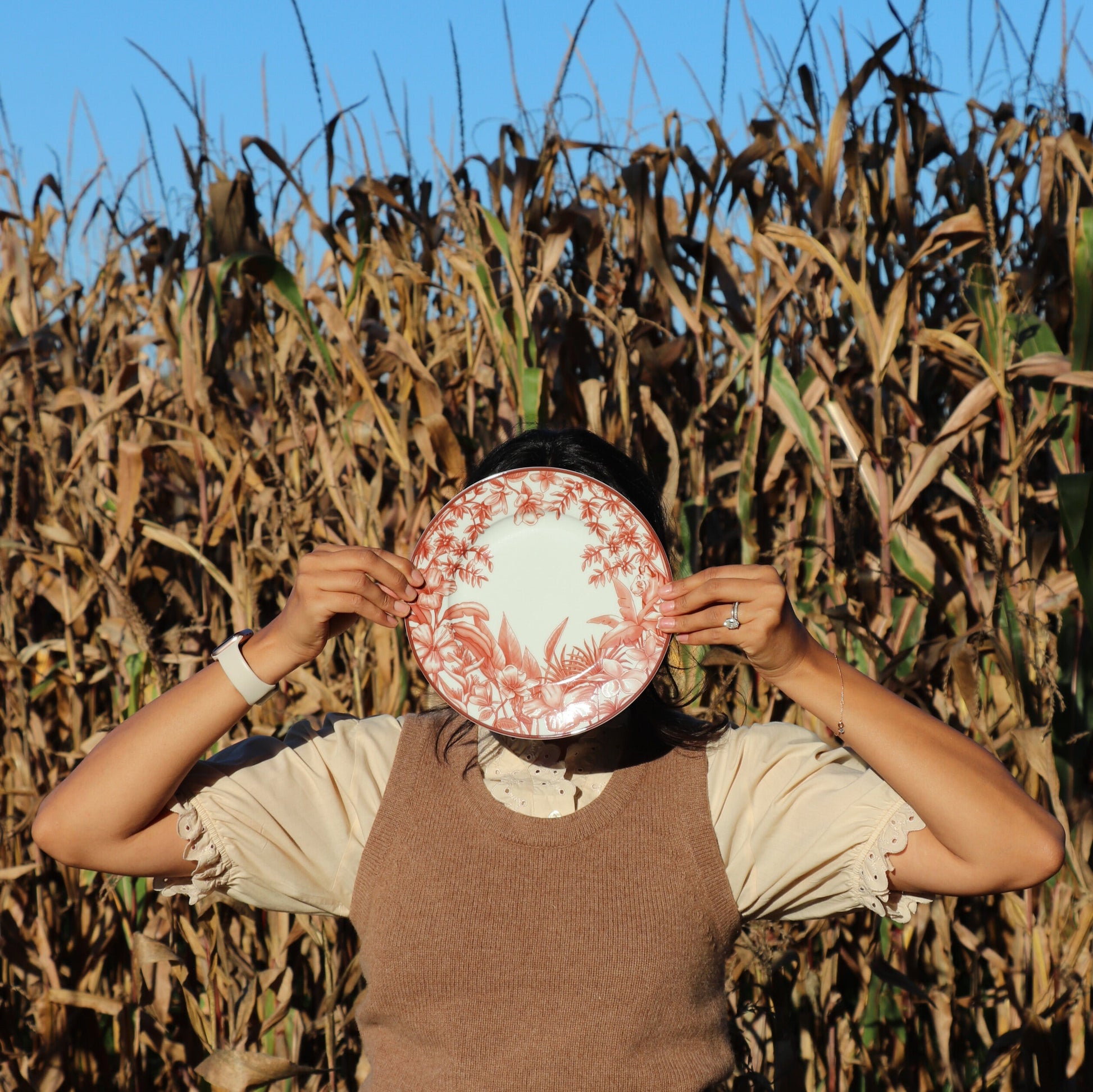 Part of our Shimla Social Collection, the Semia Estate Starter Plate is a tribute to the majestic gardens of old Indian estates, The vintage sepia tone transports one back to a time of bygone era. If you look closely enough, you may even be able to spot an Indian Tiger lurking around. Can be matched with Shimla Social coordinating pieces to create a complete place setting.