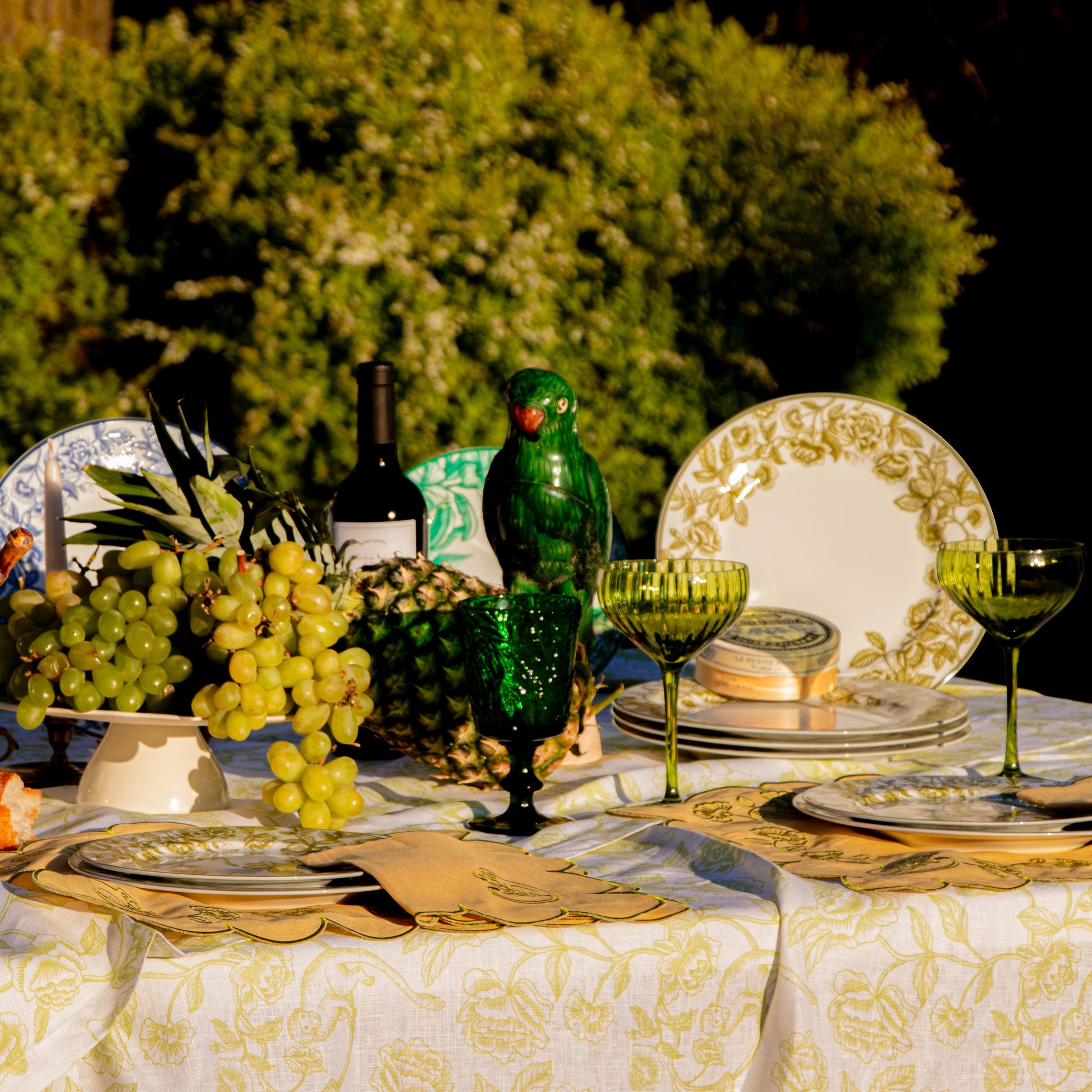Standing tall with a regal stance, this hand-painted green ceramic decorative parrot hints at tales of ancient jungles and the rich tapestry of life within them. Perfect as a conversation starter, this piece effortlessly melds the mystique of the wild with modern decor sensibilities. Pair with other Shimla Social products to narrate a captivating story and be transported to a majestic verdant rainforest.